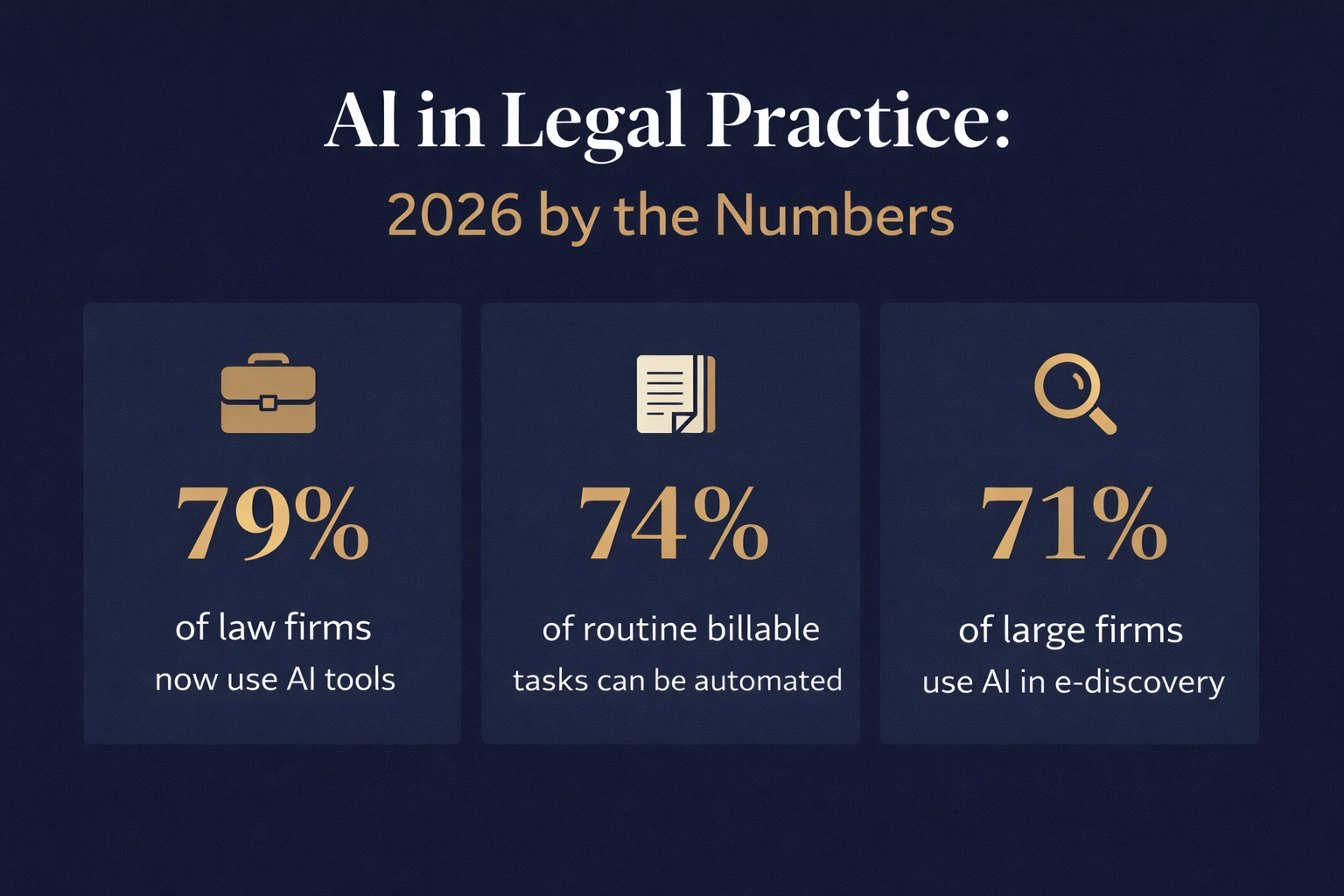The legal industry's relationship with AI has matured fast. Industry data shows that 79 percent of law firms now use AI tools, with many automating up to 74 percent of routine billable tasks like legal research, document review, and discovery. Among large firms, AI adoption in e-discovery alone has reached 71 percent.