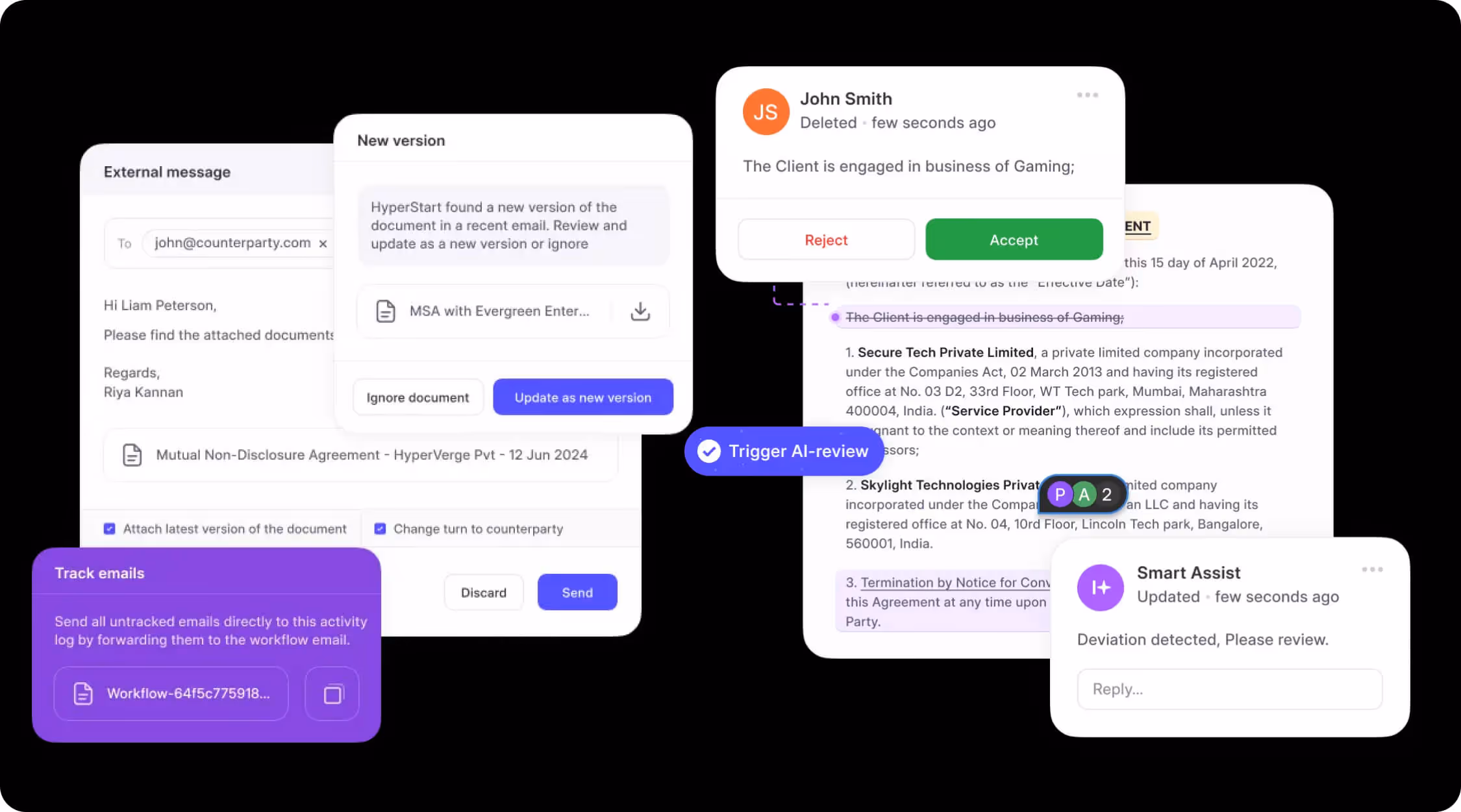 A company developed by HyperVerge, HyperStart applies AI expertise to deliver contract lifecycle management focused on usability and pricing flexibility. It ranks #4 thanks to its lawyer-friendly pricing, especially for small to medium teams.