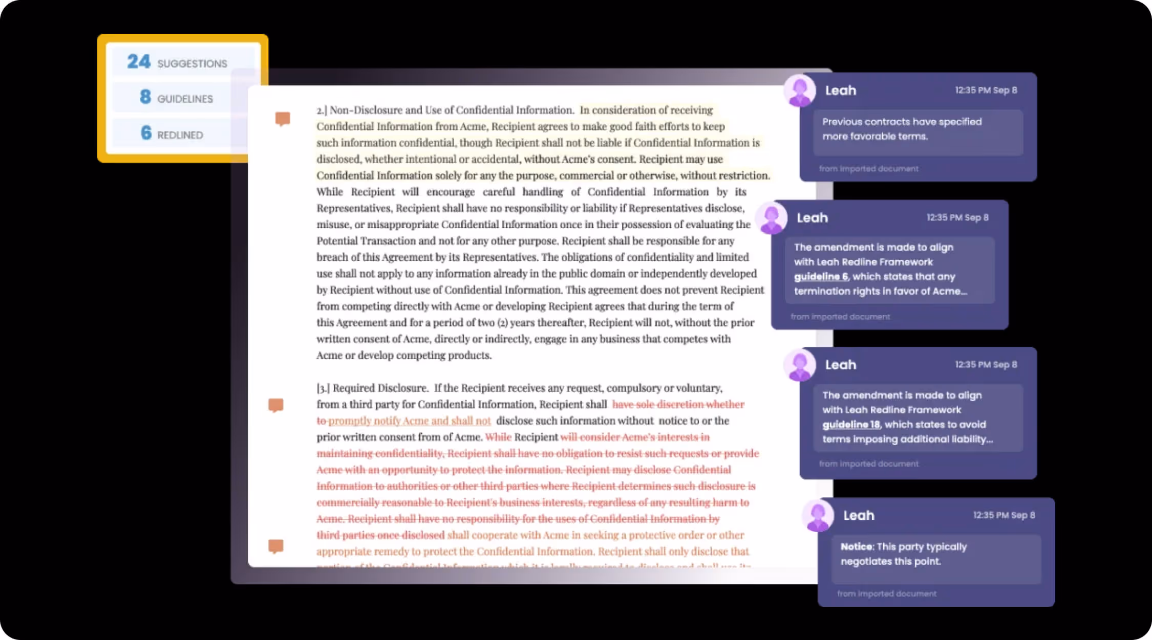 Lawyers appreciate its negotiation-focused tools, which help identify terms to push back on and track position changes throughout negotiation cycles.