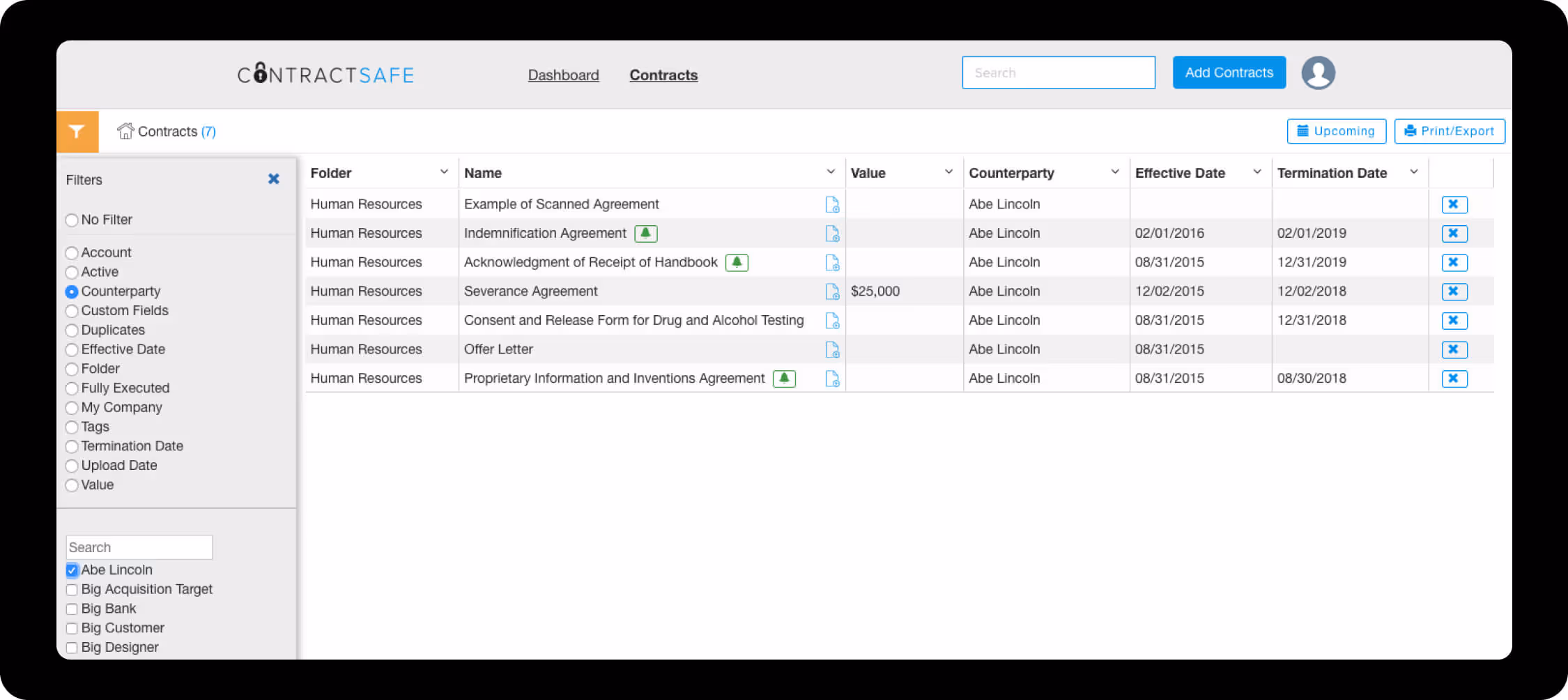 ContractSafe provides AI-powered contract review designed to make contract management software more affordable and accessible for legal teams.