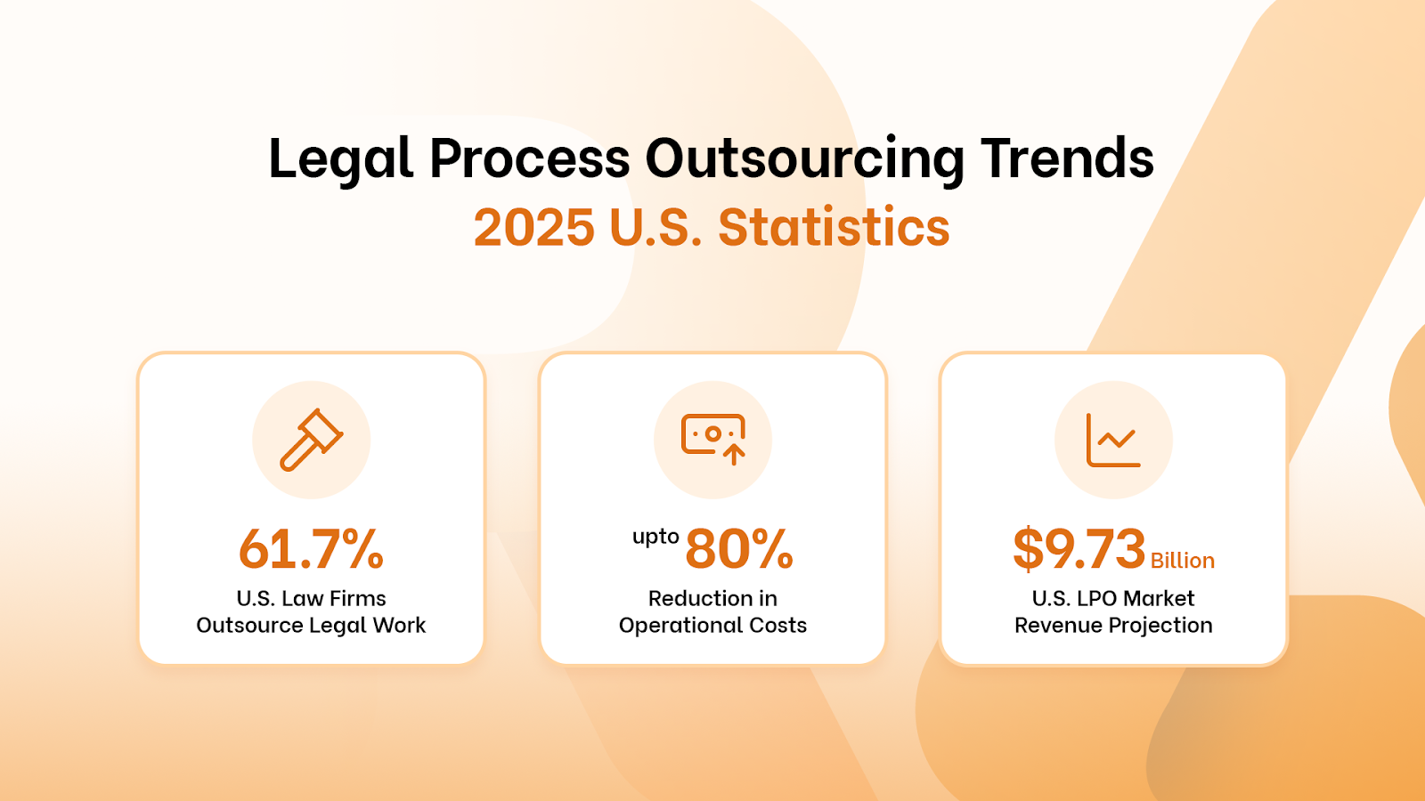 In 2025, the U.S. legal process outsourcing (LPO) market is projected to reach $9.73 billion, reflecting a growing trend of outsourcing legal tasks to reduce costs and access specialized global talent. Currently, around 61.7% of law firms offshore legal work, aligning with broader corporate trends where 66% of U.S. businesses outsourced at least one department by 2024, and 80% of executives plan to maintain or increase outsourcing.