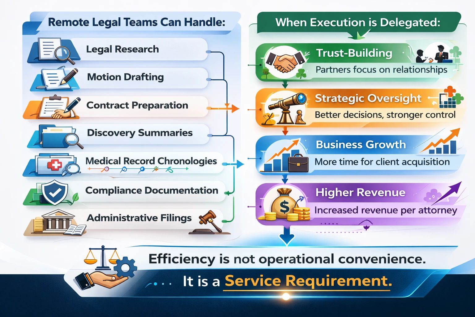 - Remote Talent Increases Capacity: Strategic delegation improves turnaround time and output quality.